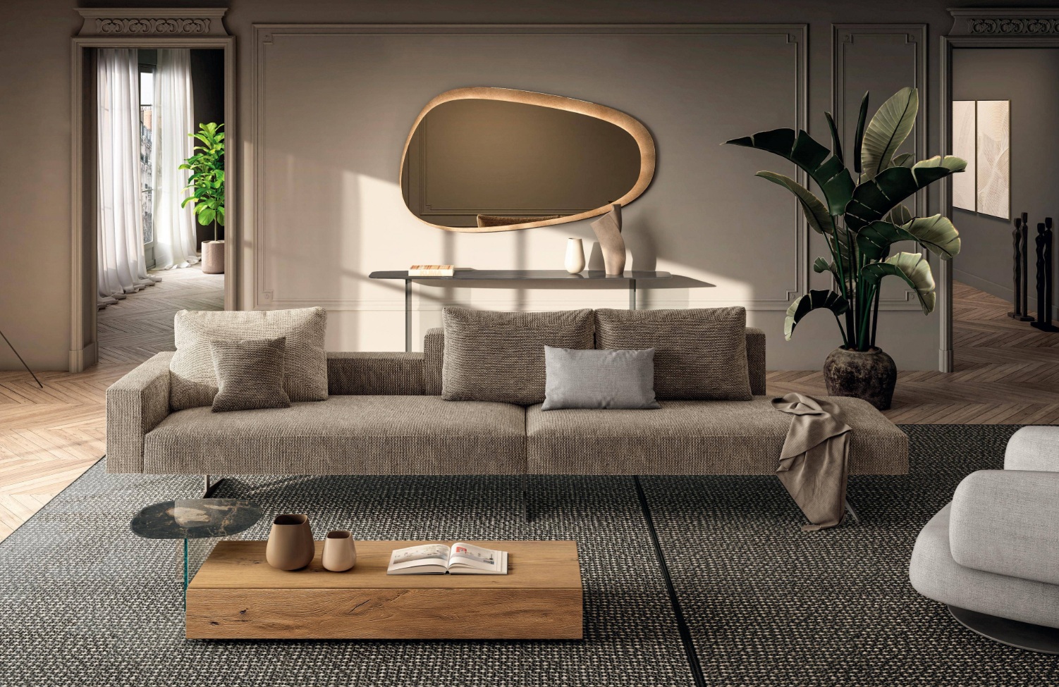 Il divano Air trova nella modularità la sua vera forza: profondità della seduta, altezza dello schienale, tessuti e colori differenti danno forma al divano su misura per ogni tipo di comfort e personalità. Grazie al sistema brevettato di aggancio, è possibile dar vita ad un divano unico che, scomposto e riconfigurato, si può trasformare in tre poltrone o due divani, a seconda di come vengono montati i telai, le sedute, gli schienali e i braccioli.