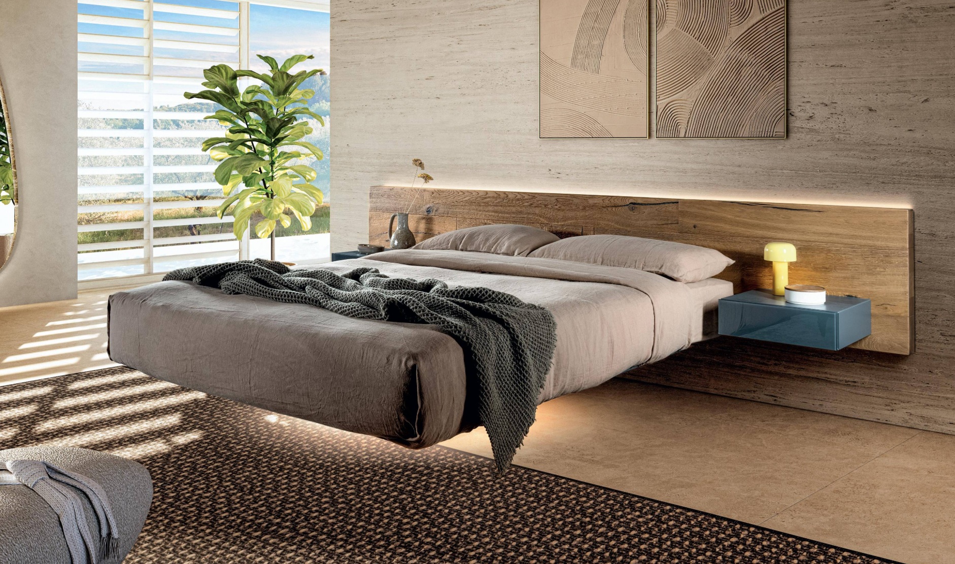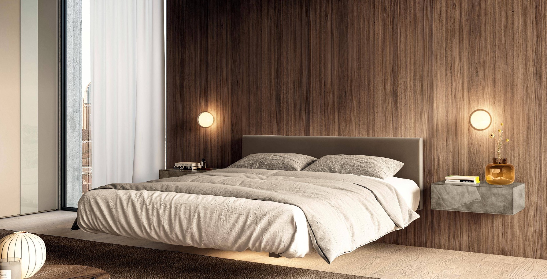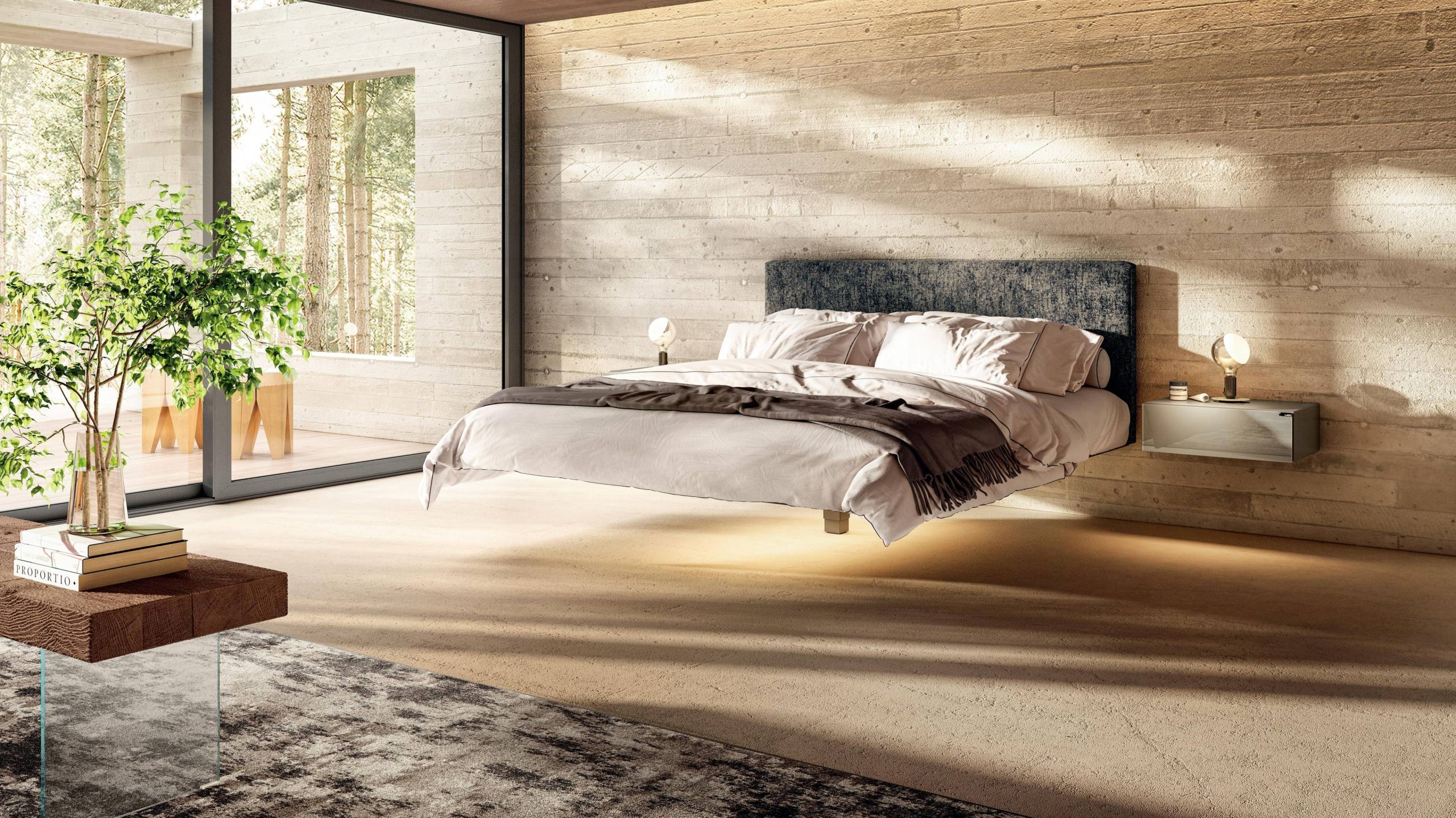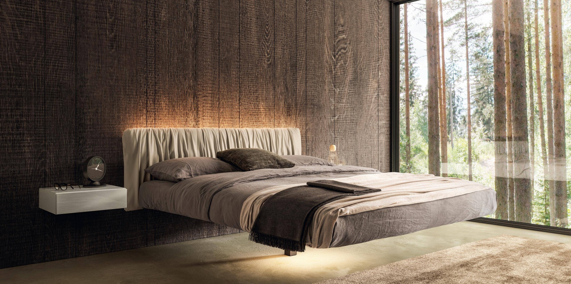 Fluttua è il primo letto sospeso al mondo che sfida la forza di gravità, dando forma all’emozione di dormire galleggiando nell’aria. Un unico sostegno centrale, regolabile in altezza, sostiene il telaio, fissato a parete tramite un sistema studiato: l’innovativo pianale in HPL risulta impercettibile alla vista, creando un magico effetto di sospensione del letto matrimoniale.